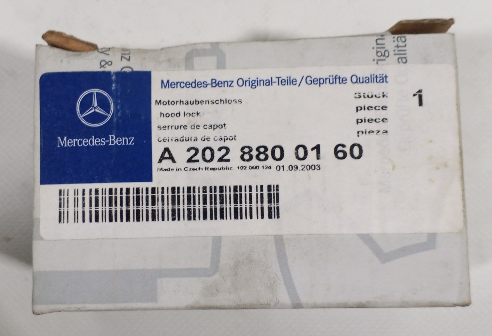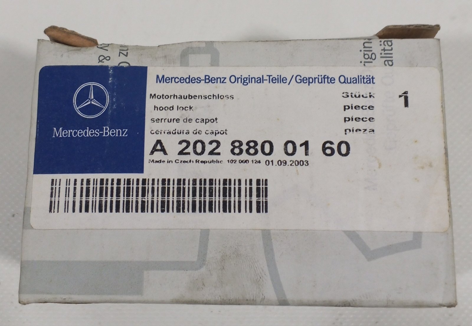 Mercedes-Benz genuine hood lock A 202 880 01 60 /A2028800160. Original bonnet lock for secure engine hood closing. OEM quality and perfect fit.