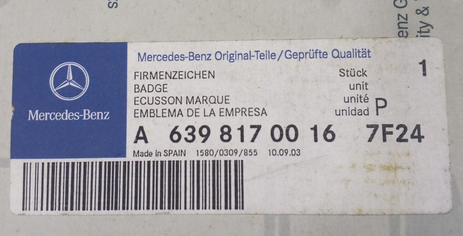 Genuine Mercedes-Benz Badge / Emblem