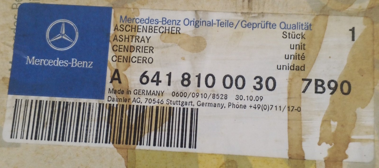 Mercedes-Benz Genuine OEM Cabin Ashtray.