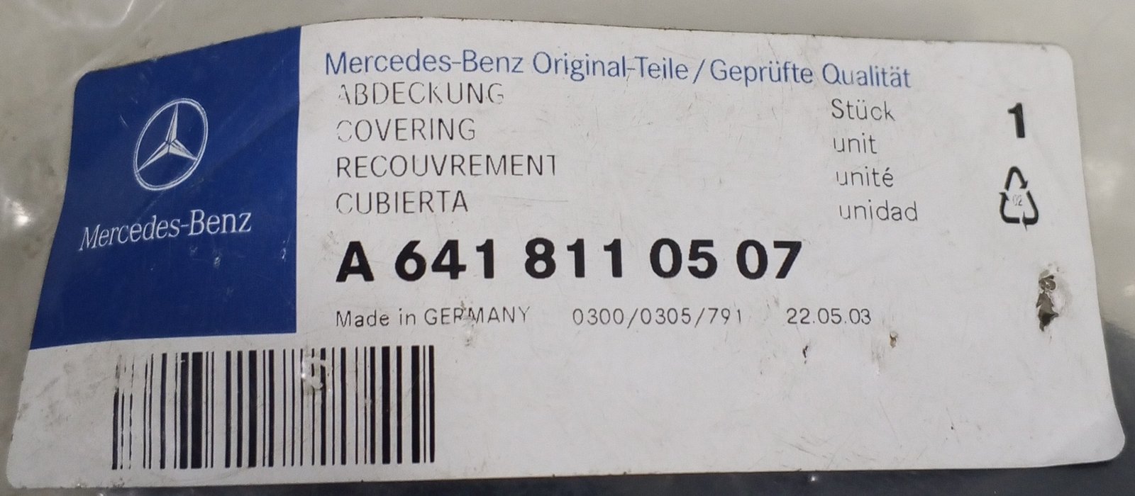 Part Number: A 641 811 05 07 / A6418110507