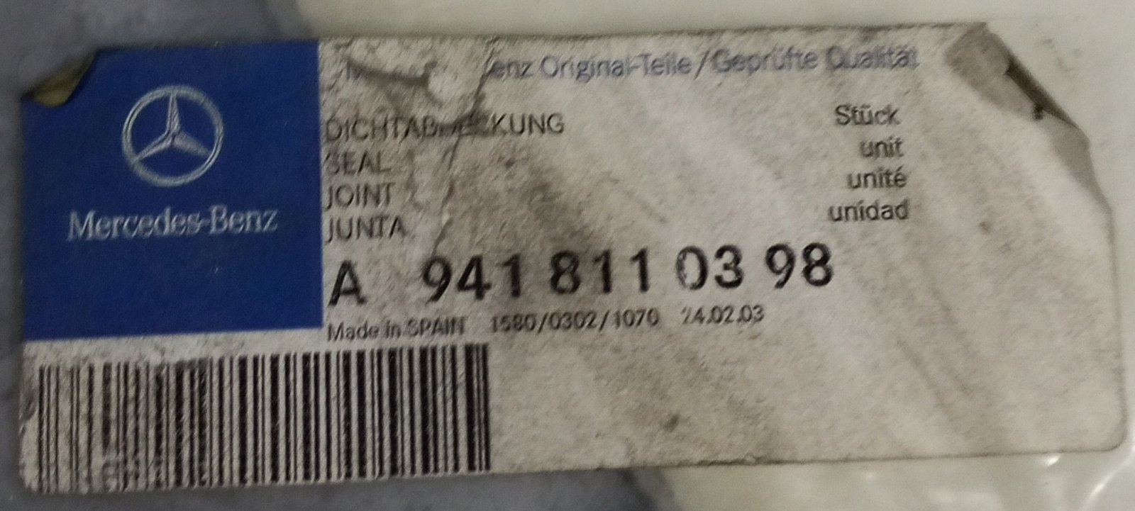 Genuine Mercedes-Benz seal A 941 811 03 98 / A9418110398 designed for sealing and protection. Original OEM quality with perfect fit and durability.
