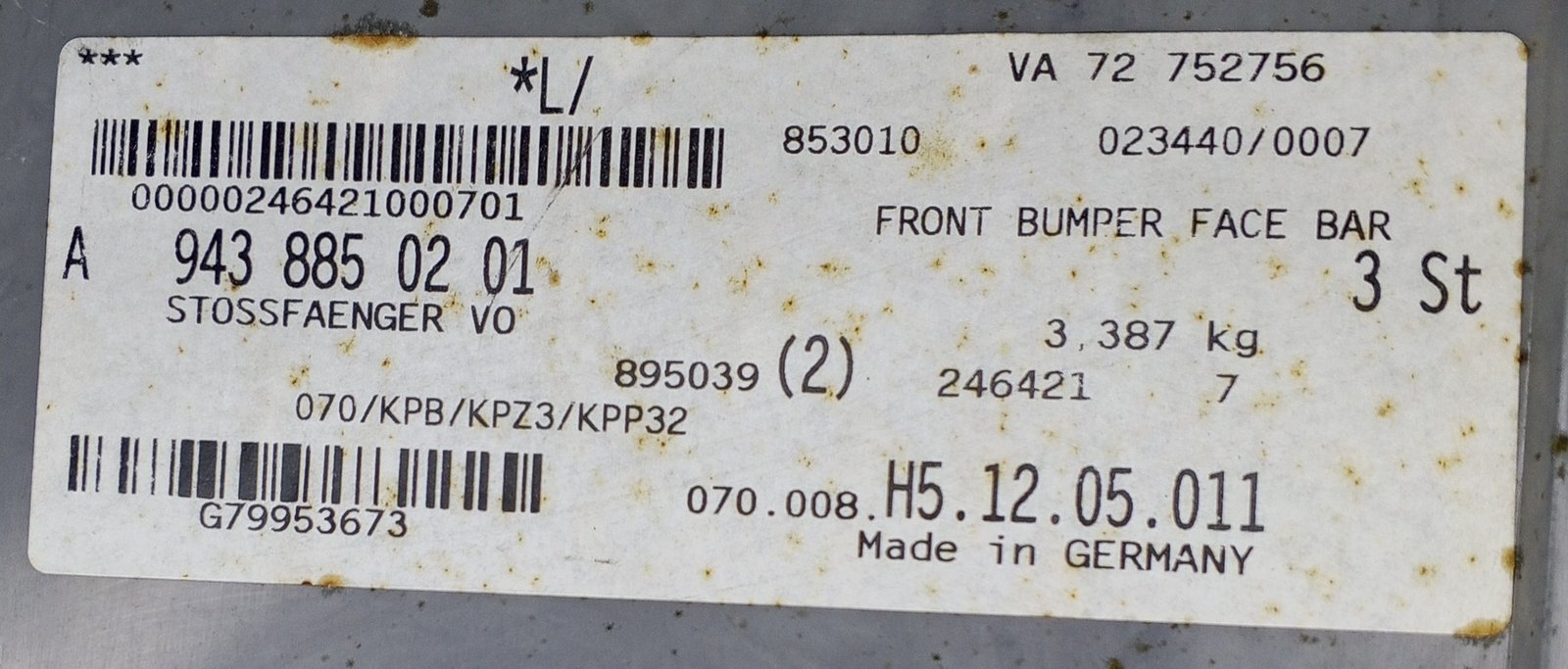 A9438850201 / A 943 885 02 01 Genuine Mercedes Front Bumper Face Bar OEM part. Strong fit and durable quality.