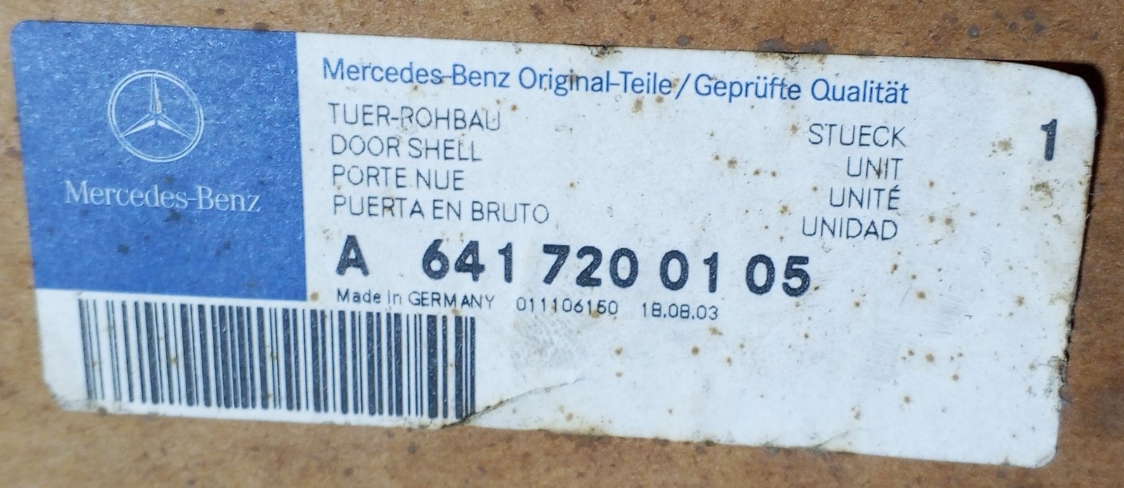 Genuine Mercedes door shell A 641 720 01 05 / A6417200105 OEM body part