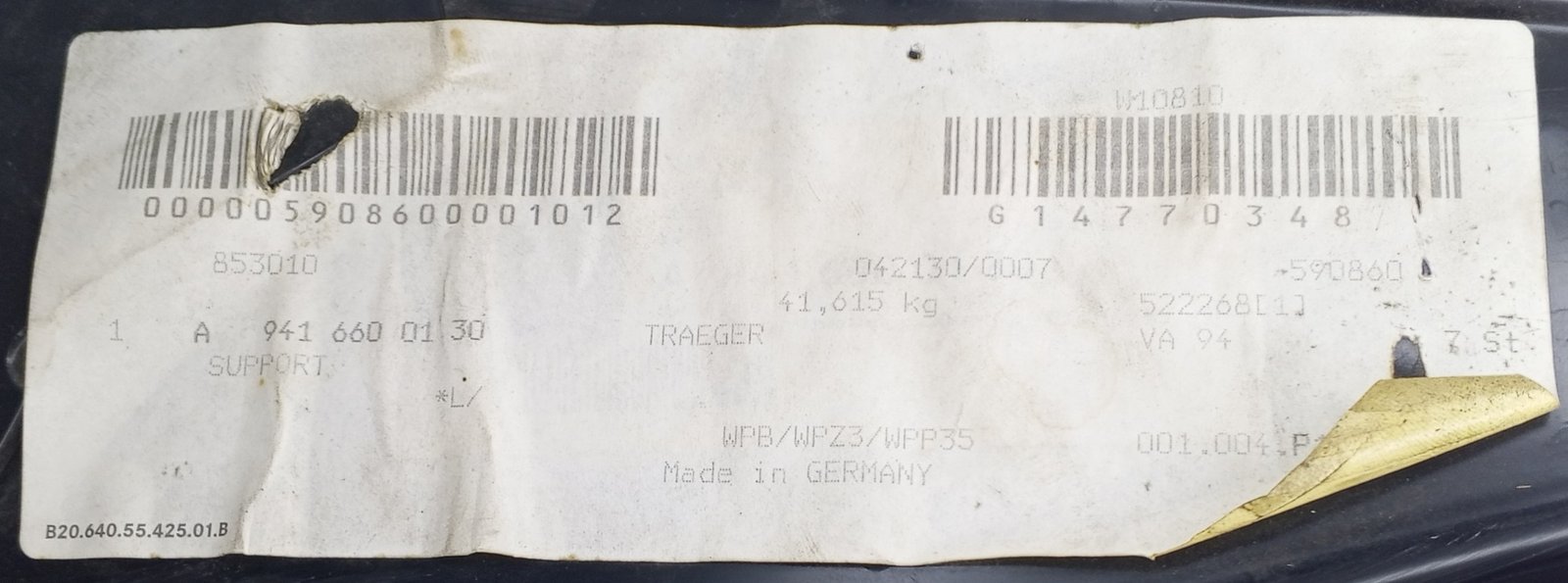 The Mercedes-Benz A 941 660 01 30 / A9416600130 is a genuine OEM support carrier designed for the structural support of the truck cabin and step assembly.