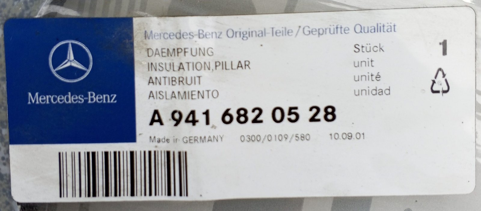 Genuine Mercedes pillar insulation A 941 682 05 28 / A9416820528 OEM new