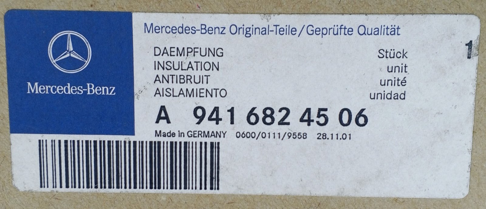 Genuine Mercedes insulation A 941 682 45 06 / A9416824506 OEM new