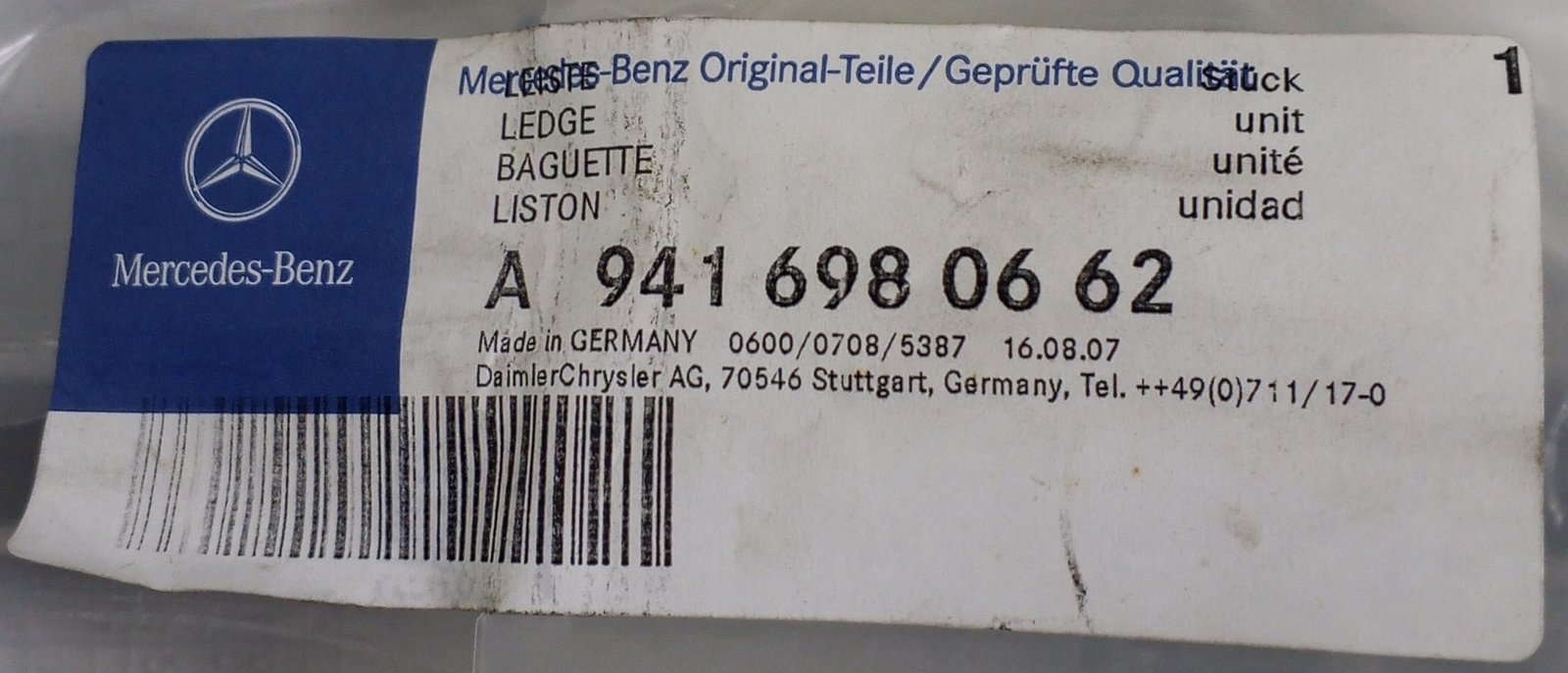 The Mercedes-Benz A 941 698 06 62 / A9416980662 is a genuine OEM trim strip (ledge/liston) designed for Mercedes truck applications.