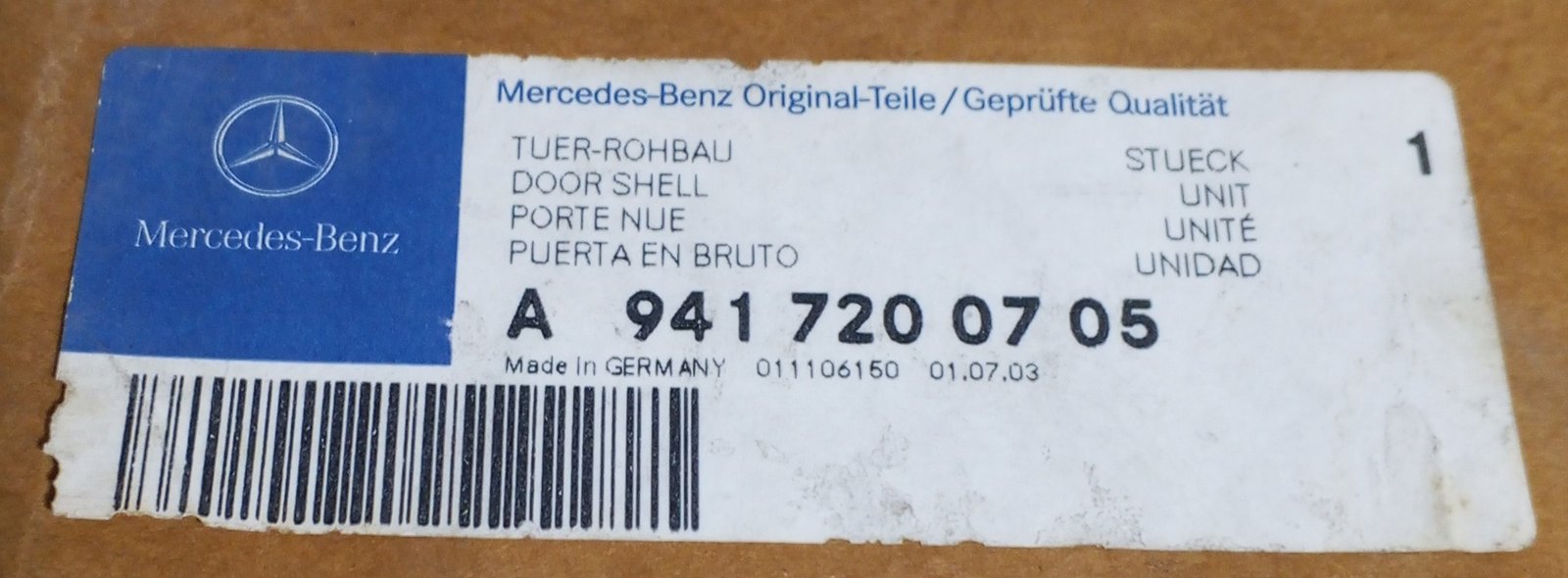 Genuine Mercedes door shell A 941 720 07 05 / A9417200705 OEM body part