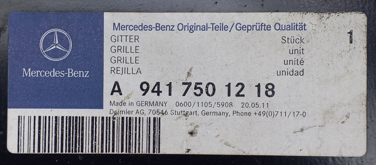 Genuine Mercedes grille A 941 750 12 18 / A9417501218 OEM new