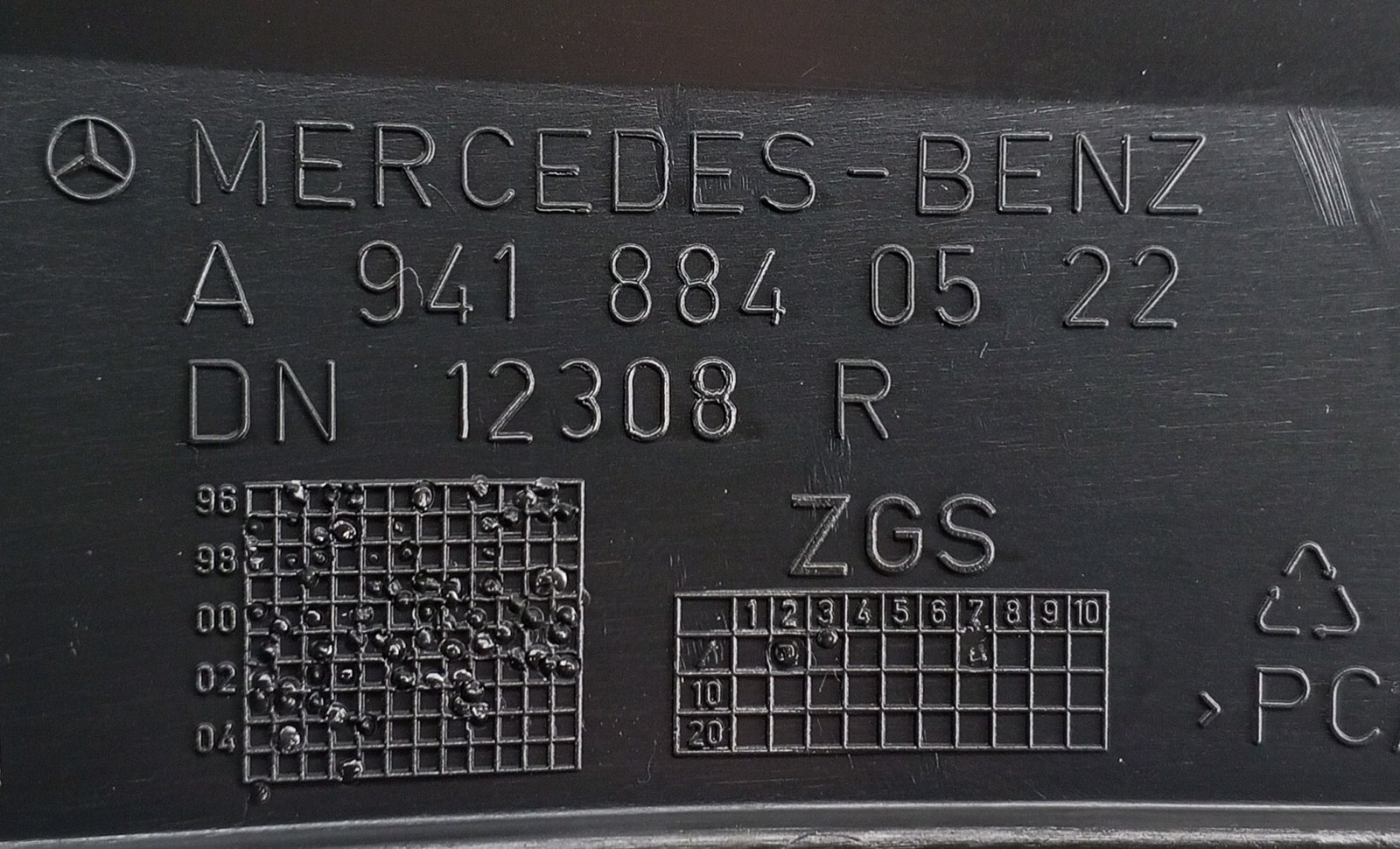 The Mercedes-Benz A 941 884 05 22 / A9418840522 is a genuine OEM cover used for body protection and finishing.