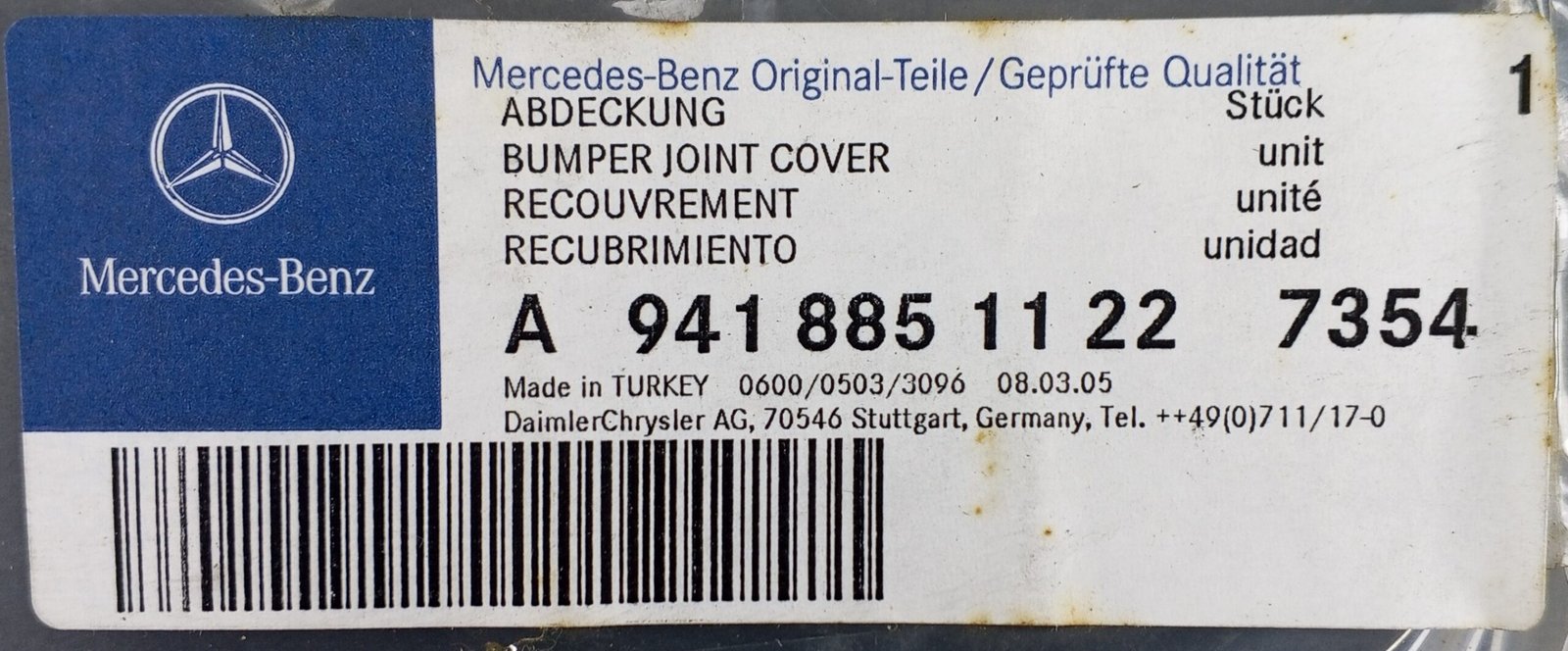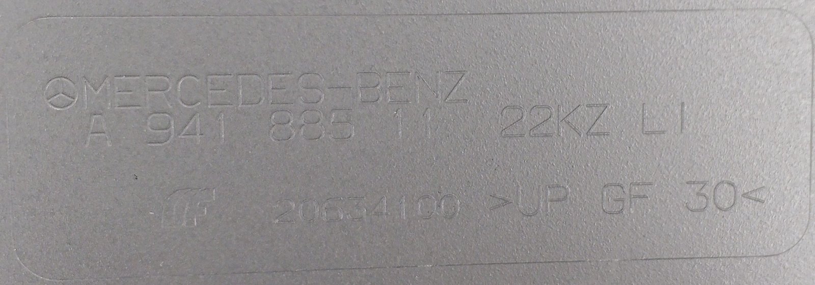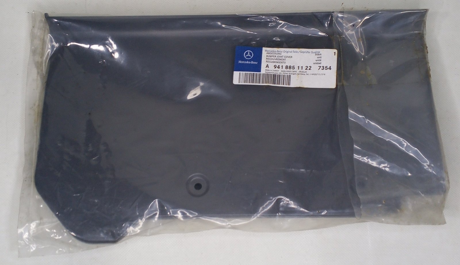 The Mercedes-Benz A 941 885 11 22 / A9418851122 is a genuine OEM bumper joint cover designed to protect and conceal bumper connections.