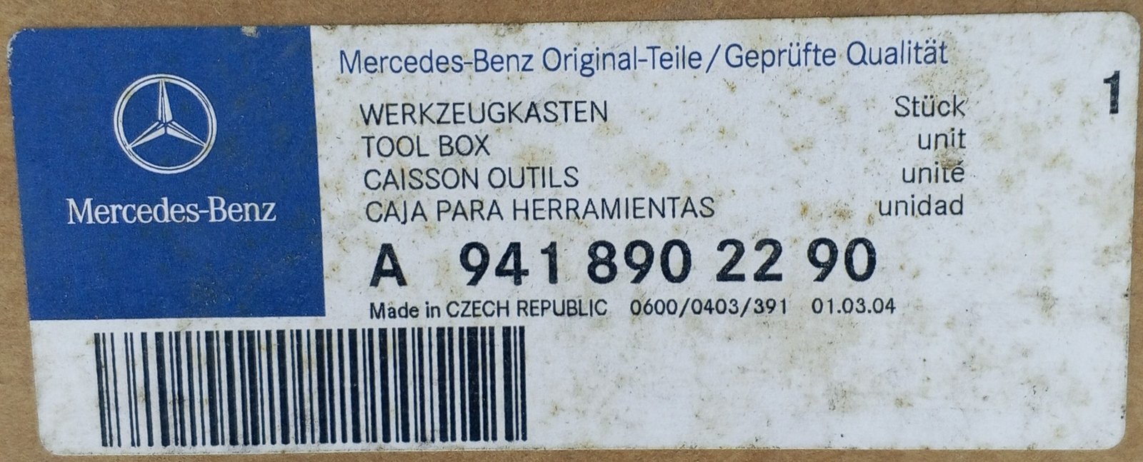 The Mercedes-Benz A 941 890 22 90 / A9418902290 is a genuine OEM tool box designed for Actros, Axor, and Atego trucks.
