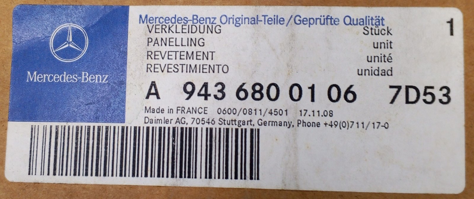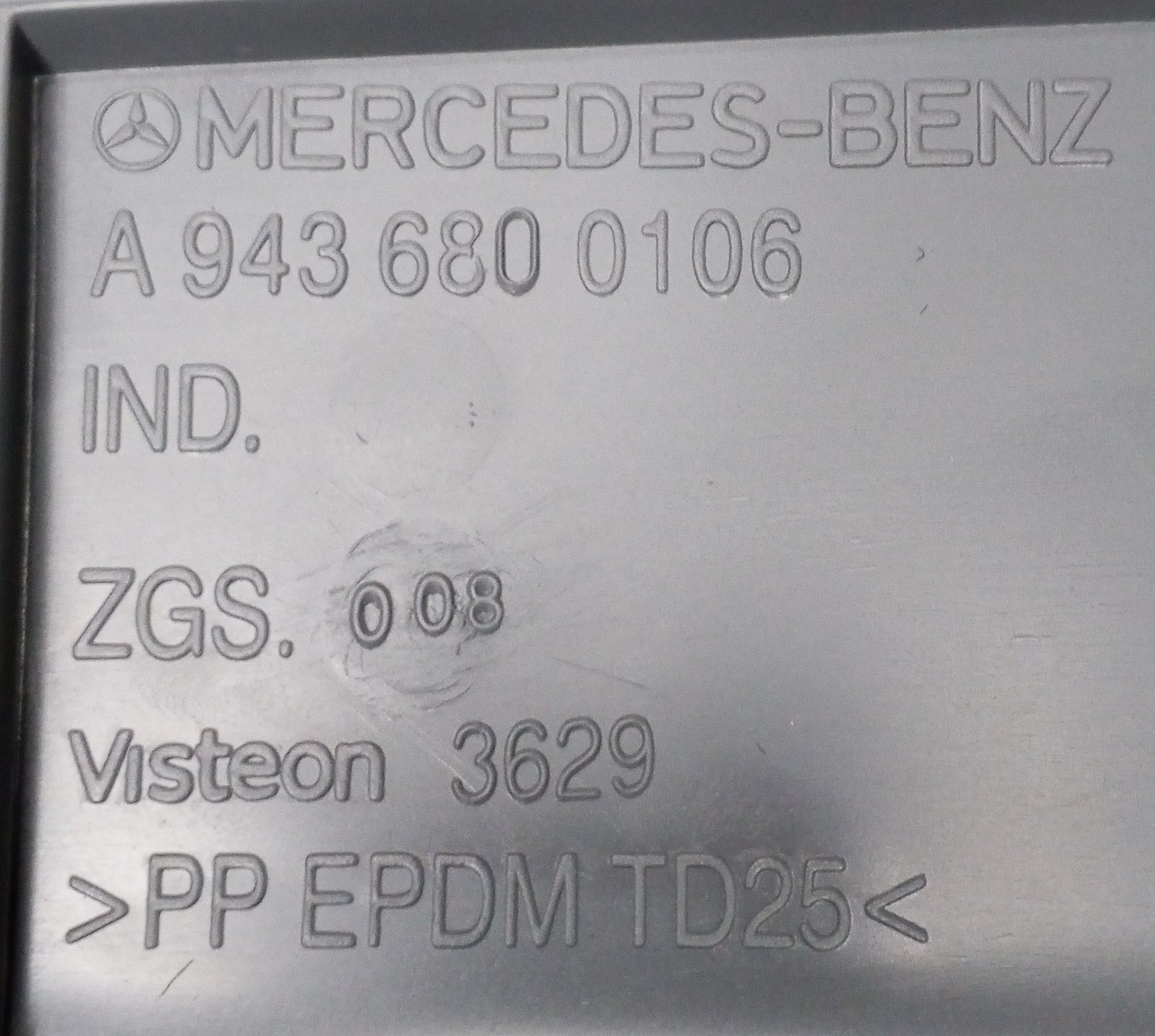 The Mercedes-Benz A 943 680 01 06 / A9436800106 is a genuine OEM interior panel designed for truck cabin applications.