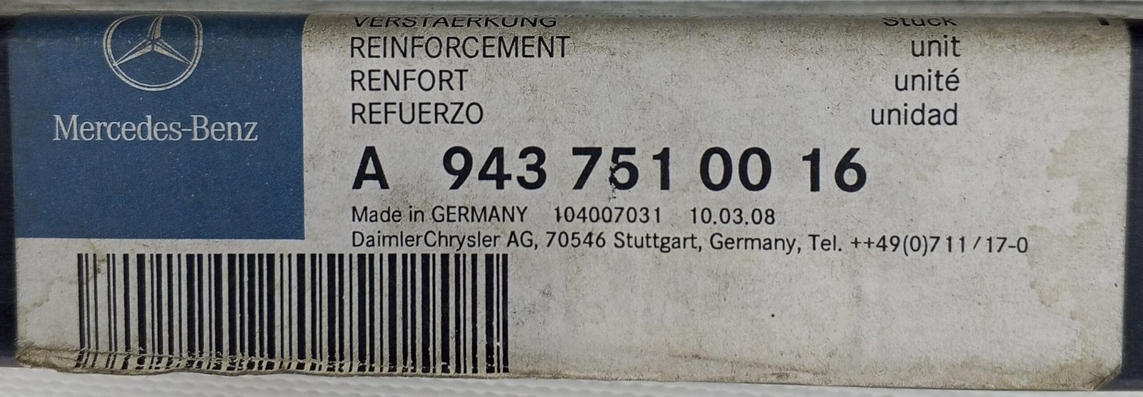 Genuine Mercedes reinforcement A 943 751 00 16 / A9437510016 OEM new