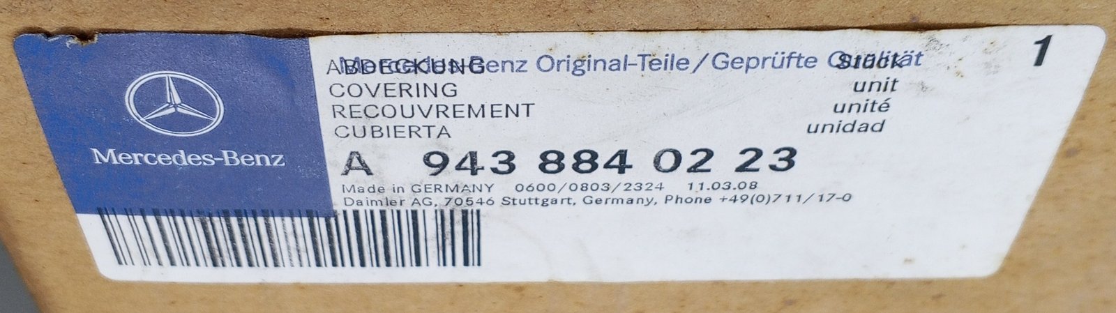 The Mercedes-Benz A 943 884 02 23 / A9438840223 is a genuine OEM exterior cover panel designed for truck body applications.