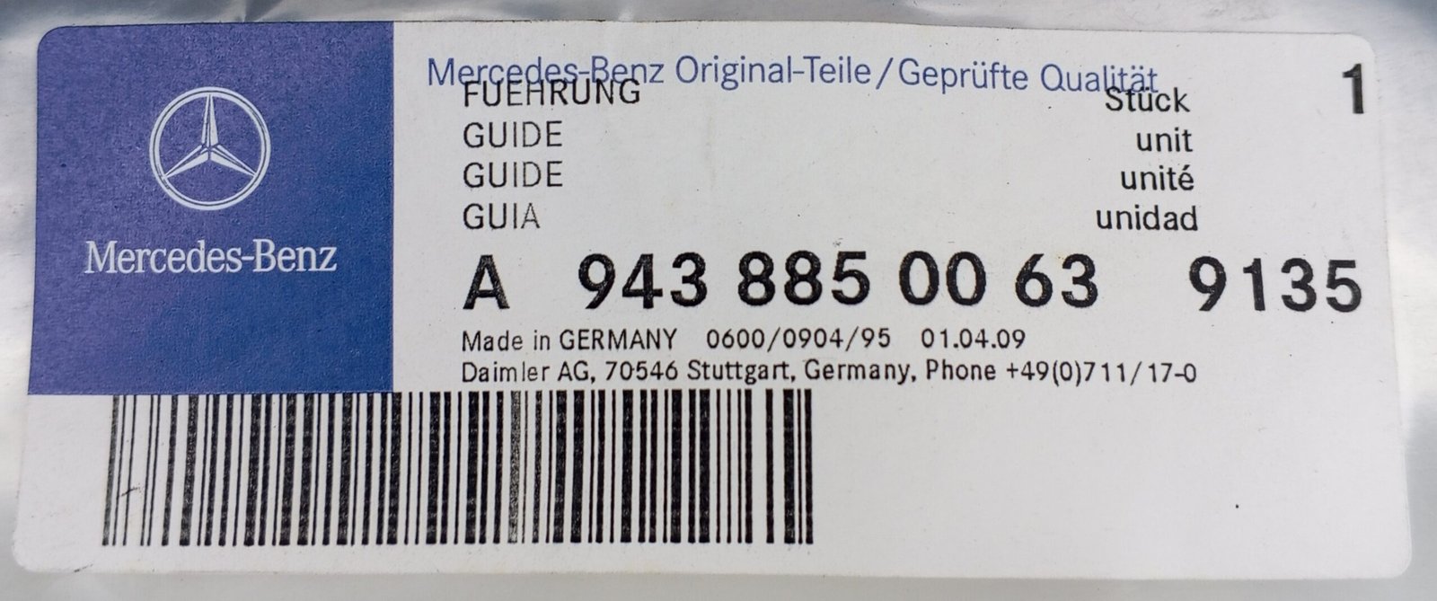 The Mercedes-Benz A 943 885 00 63 / A9438850063 is a genuine OEM bumper guide designed to ensure correct alignment and secure installation of the bumper components.