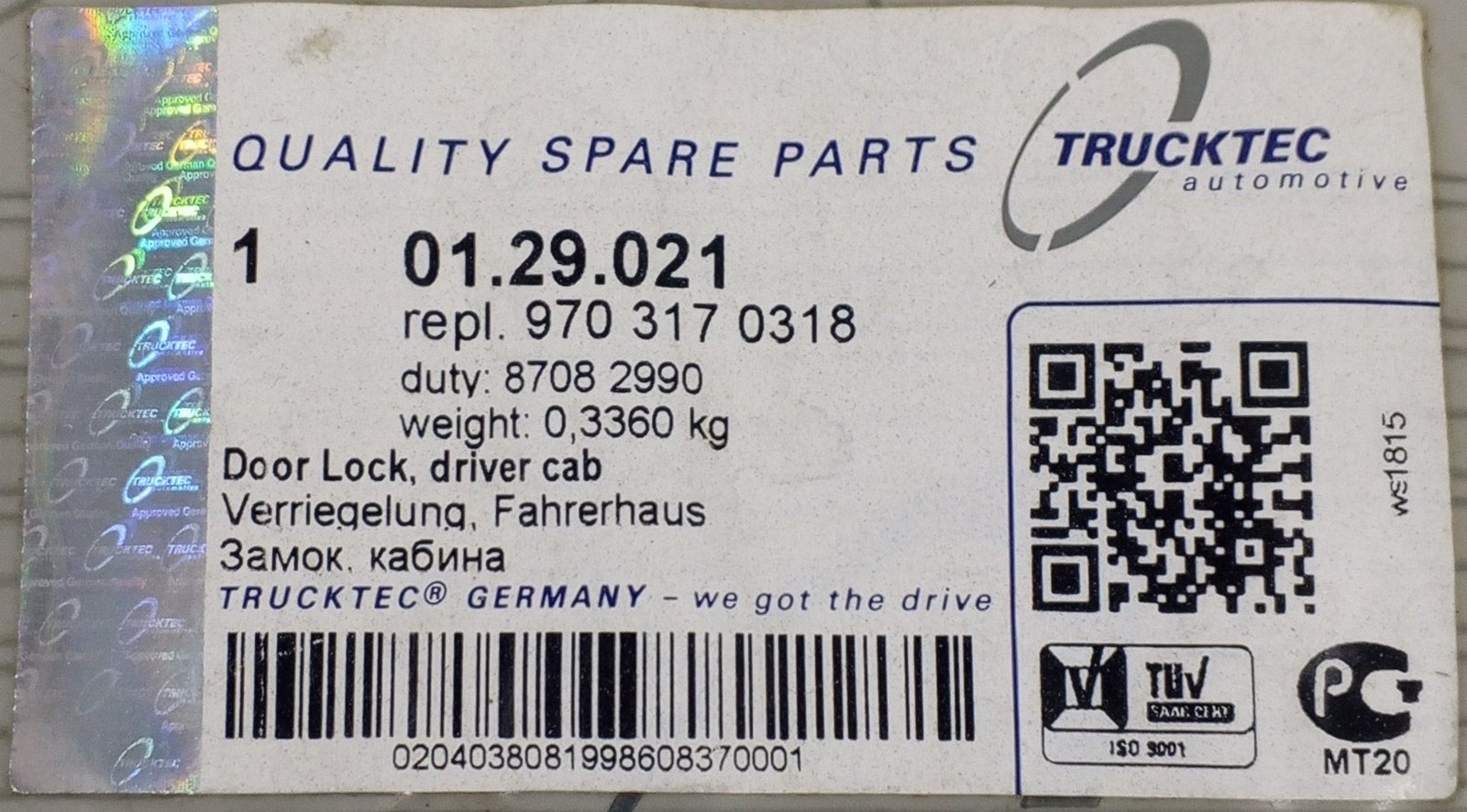 Trucktec 01.29.021 / 01 29 021 door lock for Mercedes driver cab replaces OEM A 970 317 03 18 / A9703170318.