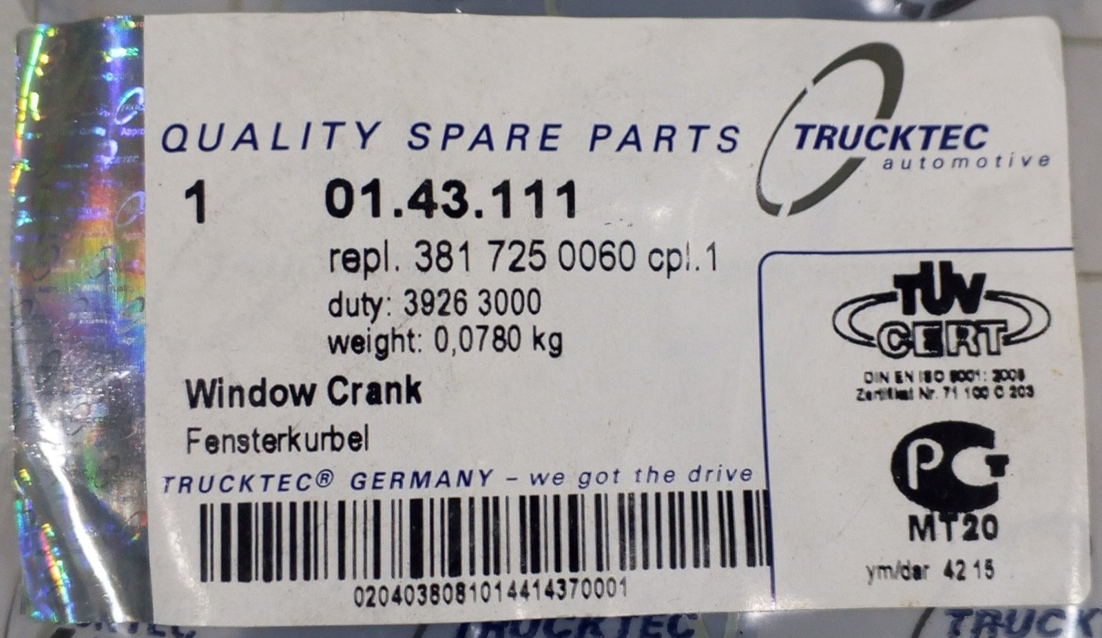 A 381 725 00 60 Trucktec 01.43.111 Window Crank