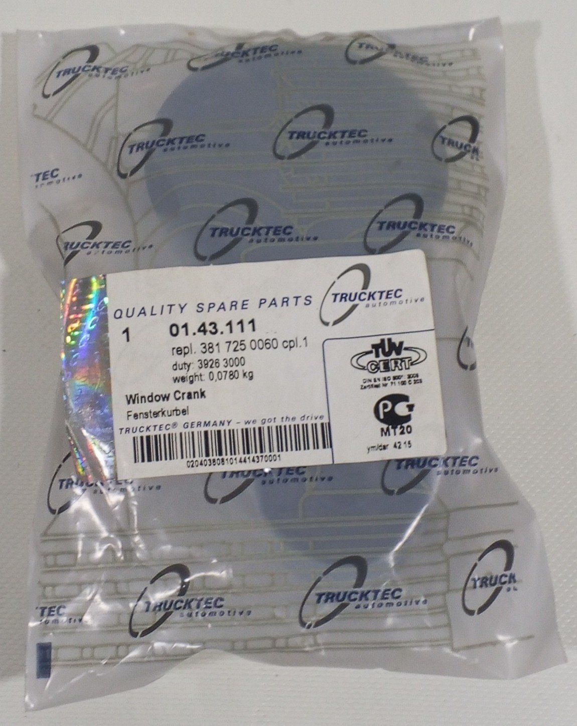 Trucktec 01.43.111 / 01 43 111 window crank replacement for OEM 3817250060 / A 381 725 00 60 with perfect fit and reliable performance.
